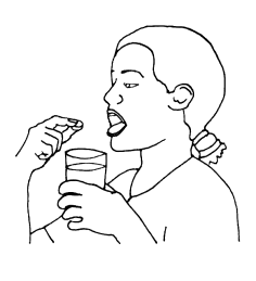 - For Mouth: Put pills inside each cheek or under your tongue. Hold them there for 30 minutes while your body absorbs the medicine. It's ok to swallow your saliva. Then swallow the pills with a drink.